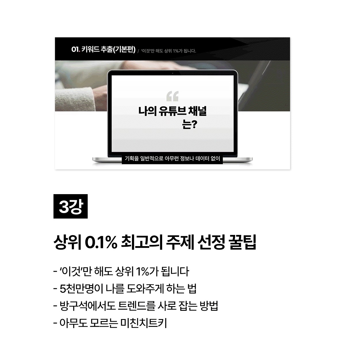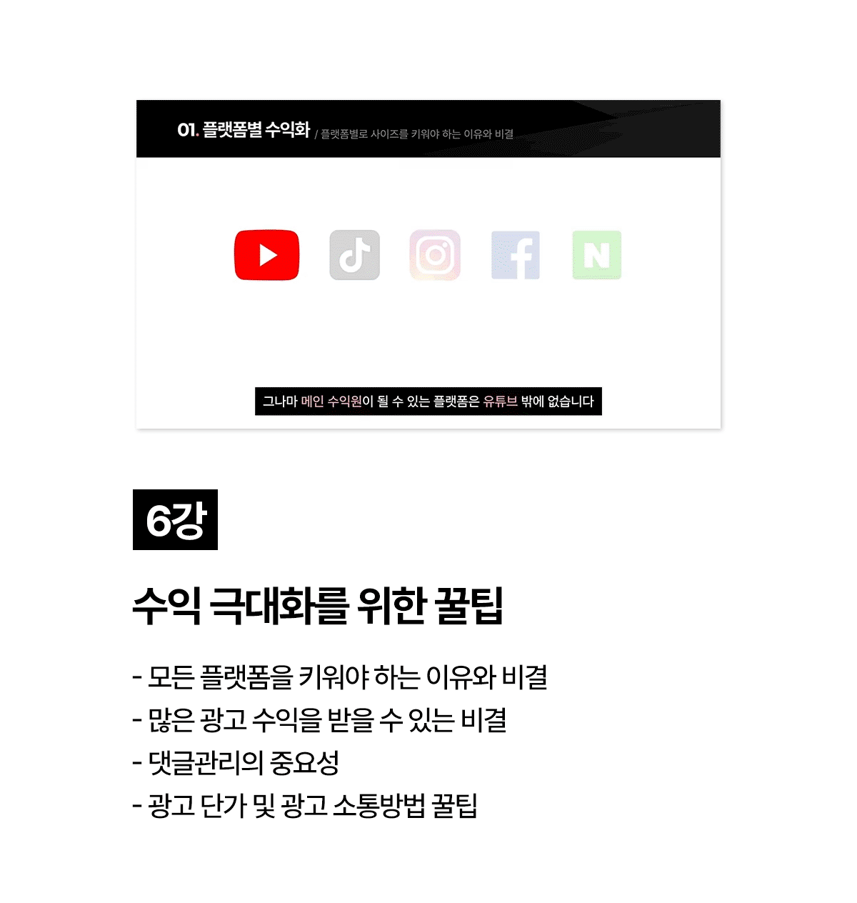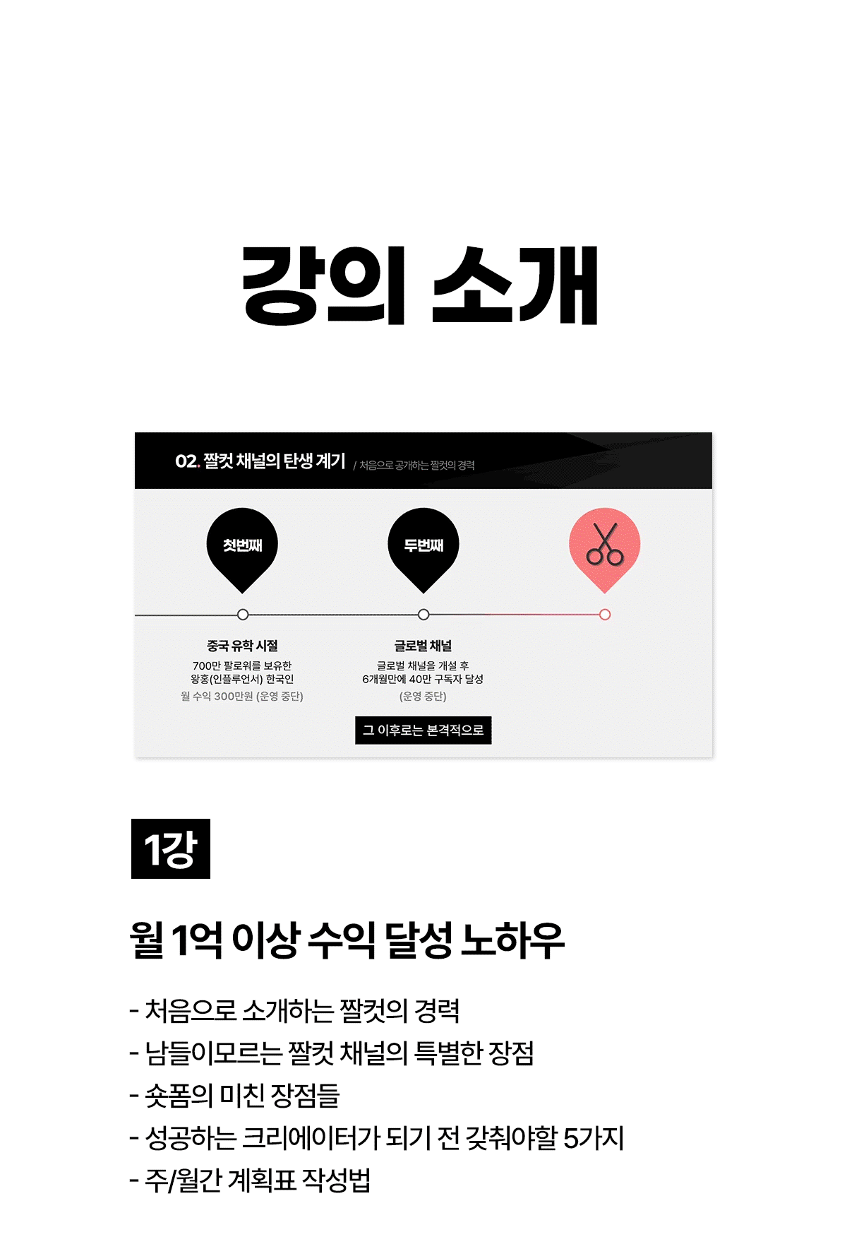 8. 짤듀 강의는 채널 브랜딩을 통한 광고 매출 극대화를 지향합니다. 과도한 불펌 업로드 영상 및 저작권 위반 영상 사용(전체 영상 부분 중 1/2 이상이 타인의 영상을 무단 도용한 경우) 을 통한 양산형 채널의 경우 환급이 불가능합니다.